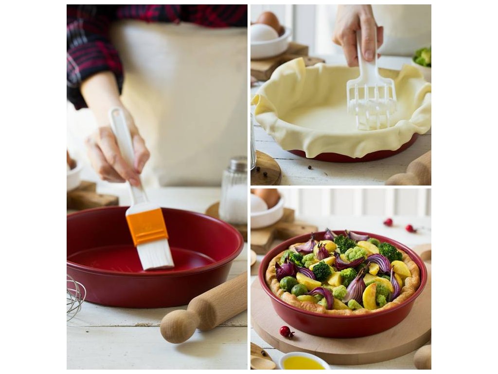 Vysoce kvalitní nepřilnavá kovová forma. Jednoduché použití a snadné zdobení. Je ideální pro přípravu sladkých i slaných pokrmů. Průměr: 24,5 cm Výška: 5 cmDoplňkové parametry