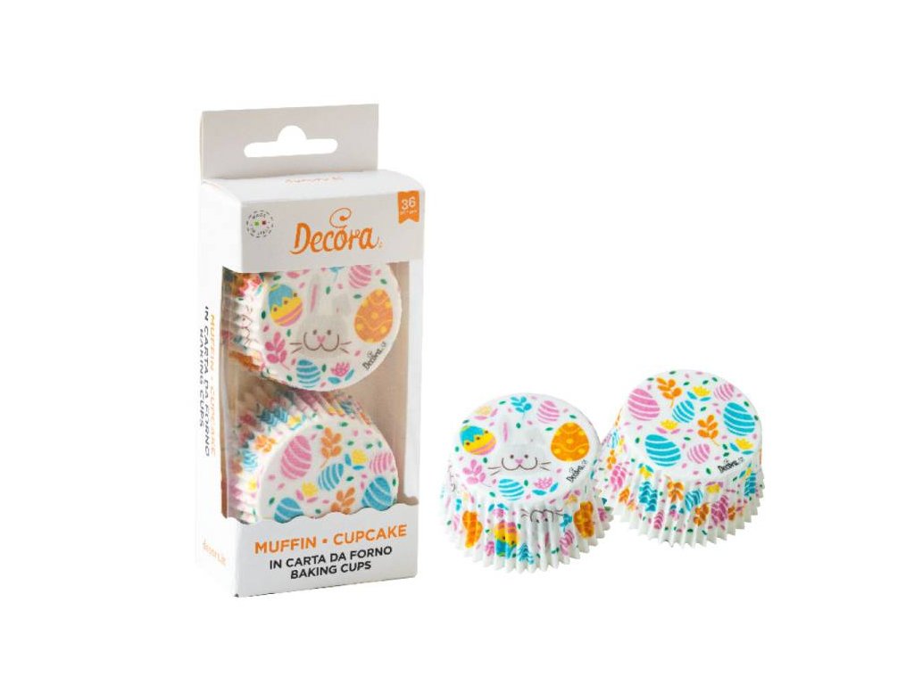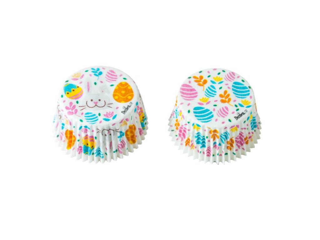 Decora košíčky na muffiny Bílé s velikonočními vajíčky (36 ks) ▹