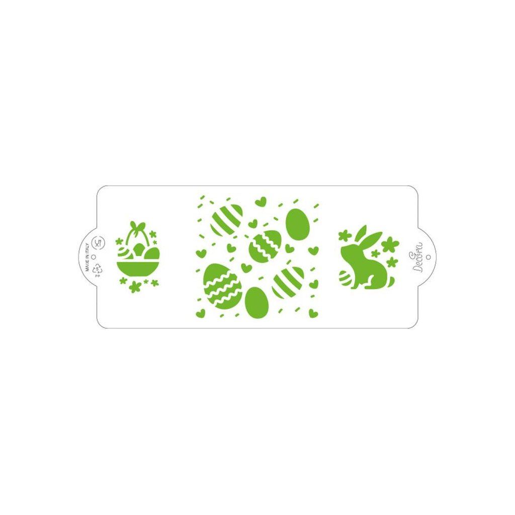Použití: Stencilu přiložíme na potahovací hmotu a přetřeme ji buď polevou Royal icing nebo prachovou barvou. Též lze použít nástřik pomocí sady Airbrush nebo barvy ve spreji. Při aplikaci nesmíme šablonou pohnout. Pak ji z hmoty sundáme.
