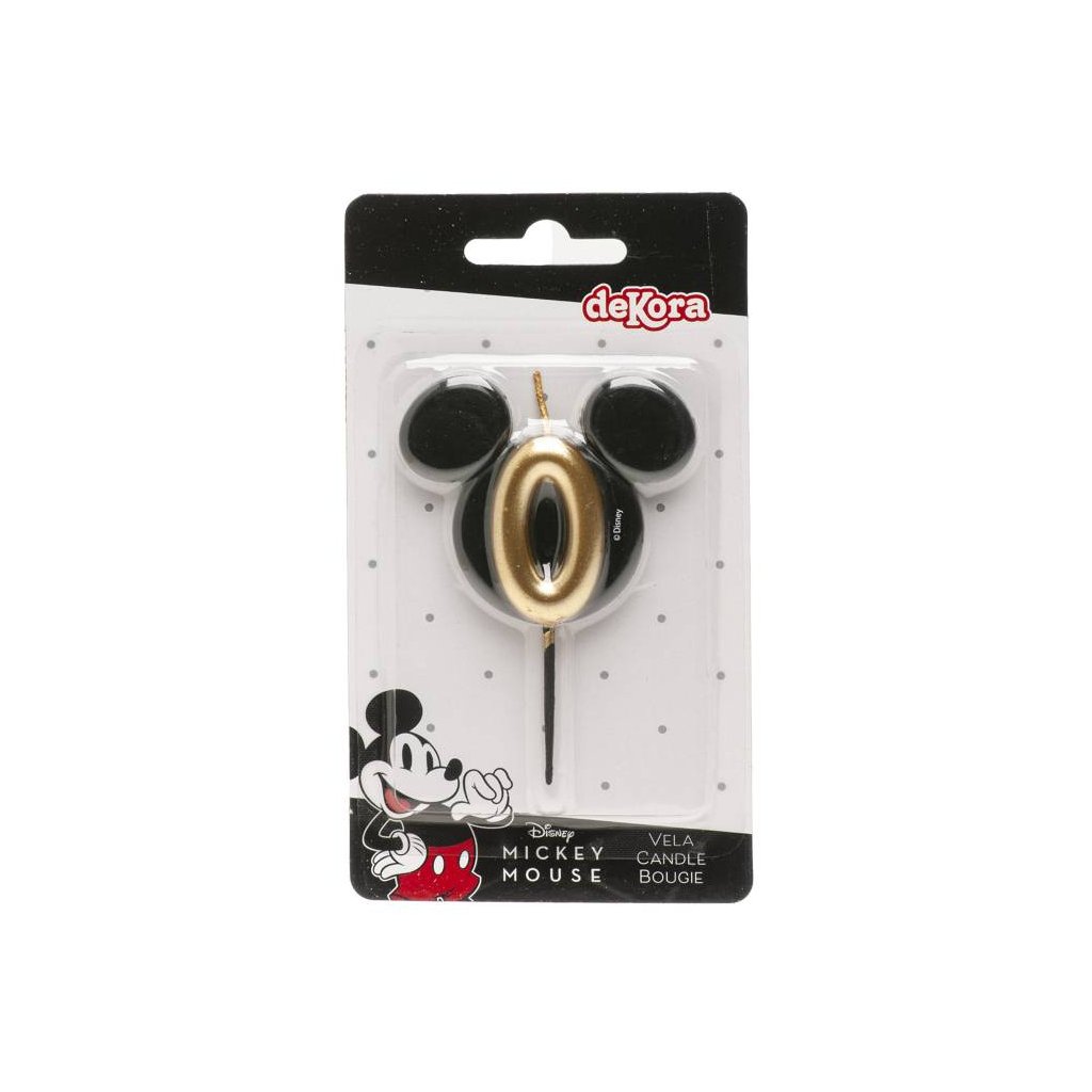 Dekora svíčka Mickey černo-zlatá číslo 0 ▹