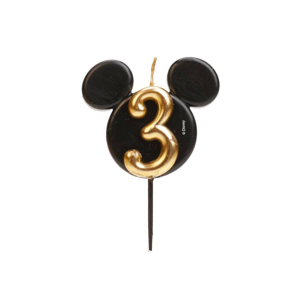 Dekora svíčka Mickey černo-zlatá číslo 3 ▹