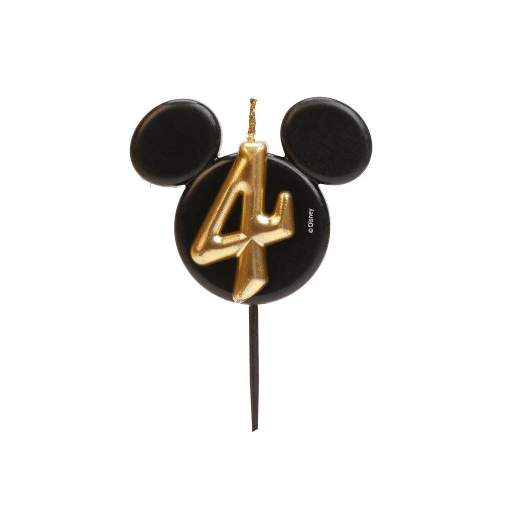 Dekora svíčka Mickey černo-zlatá číslo 4 ▹