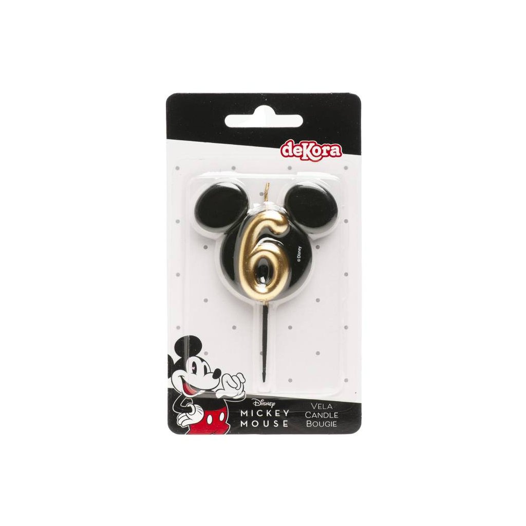 Dekora svíčka Mickey černo-zlatá číslo 6 ▹