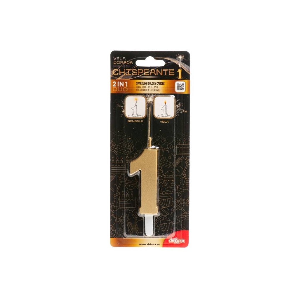 Dekora svíčka s prskavkou zlatá číslo 1 ▹