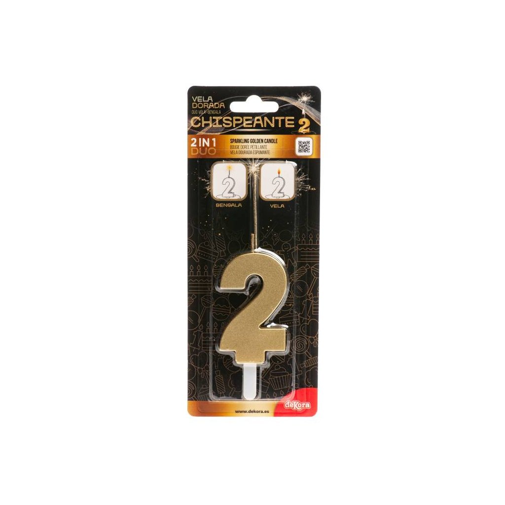 Dekora svíčka s prskavkou zlatá číslo 2 ▹