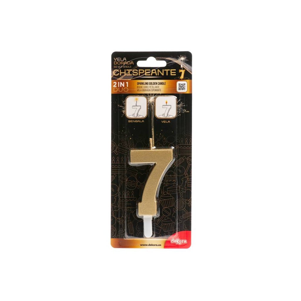 Dekora svíčka s prskavkou zlatá číslo 7 ▹