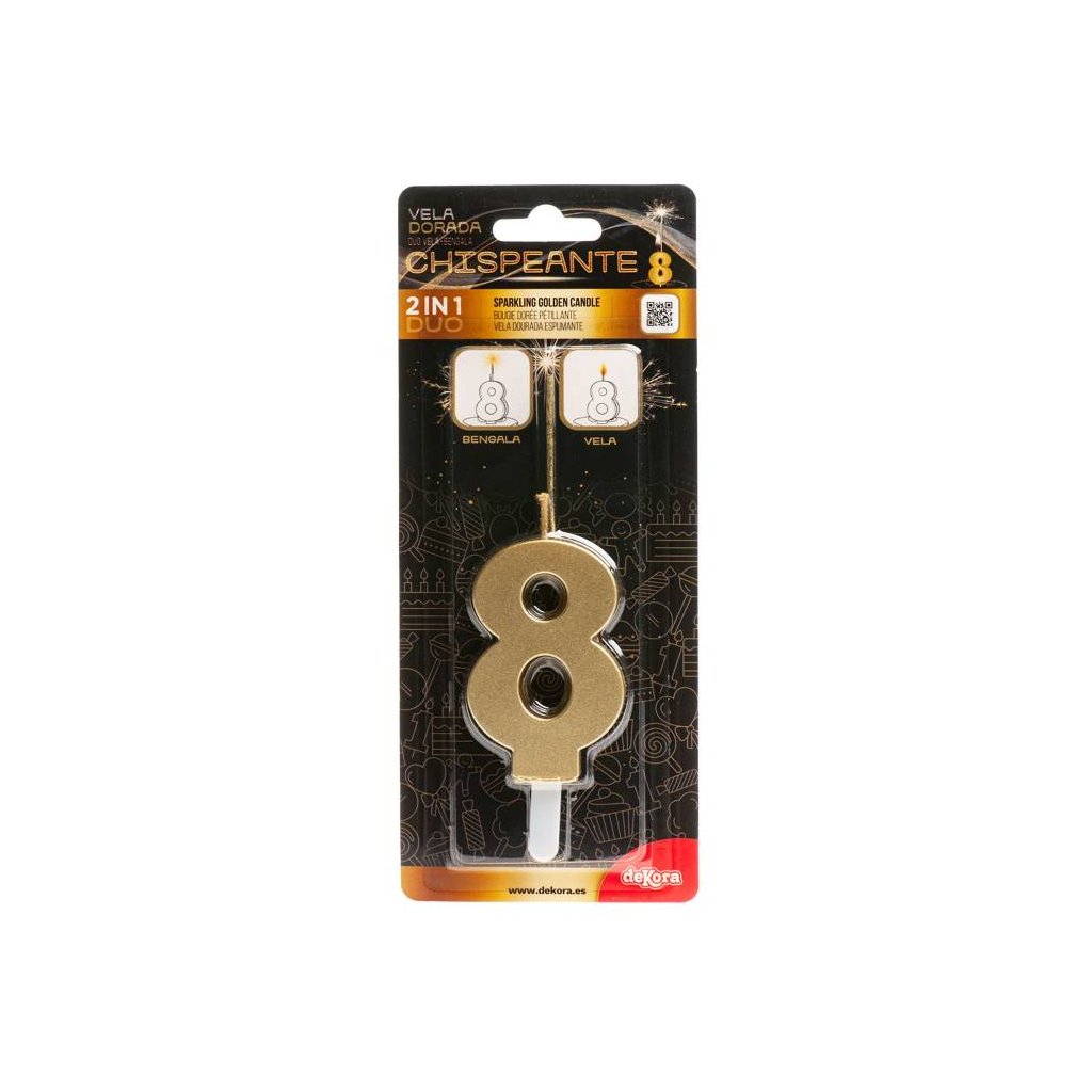 Dekora svíčka s prskavkou zlatá číslo 8 ▹