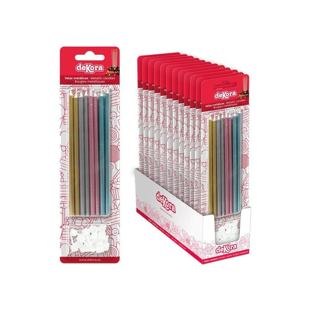 Cukrářské potřeby a suroviny pro sladké pečení.Produkt pro domácí cukráře: Barevné dortové svíčky se zápichem 13cm 8ks - Dekora ,