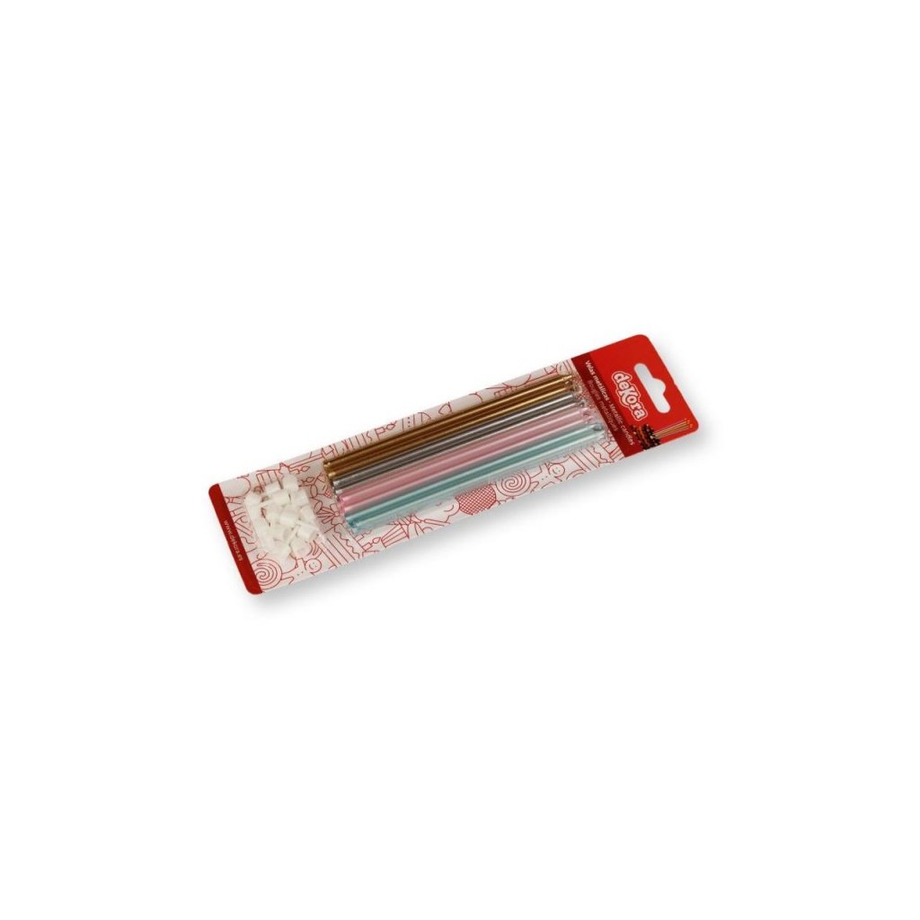Dekora svíčky dlouhé barevné metalické se stojánky (16 ks) ▹