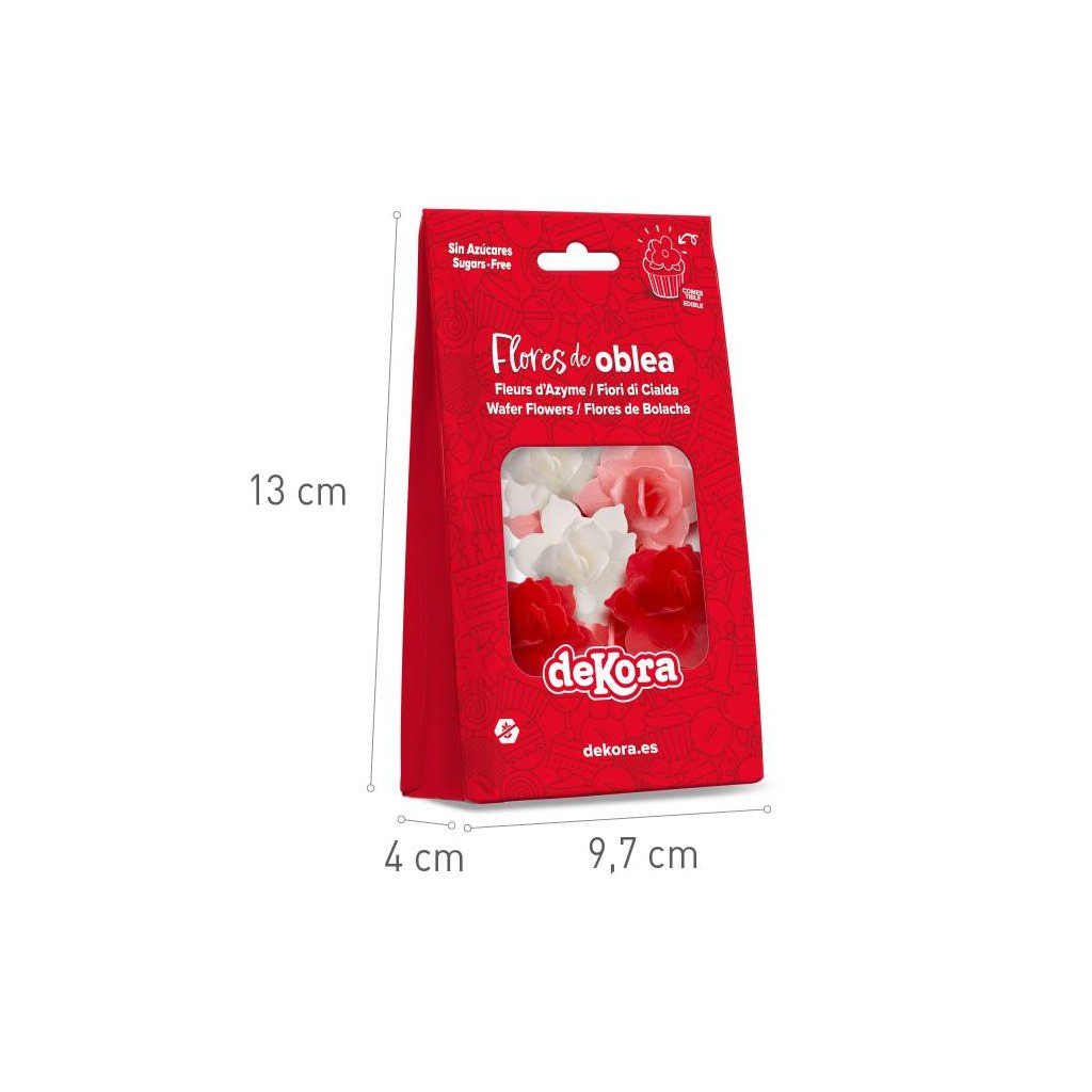 Složení, co obsahuje produkt - Dekorace z jedlého papíru Květiny bílé, růžové a červené 8 ks pro cukrářské účely: