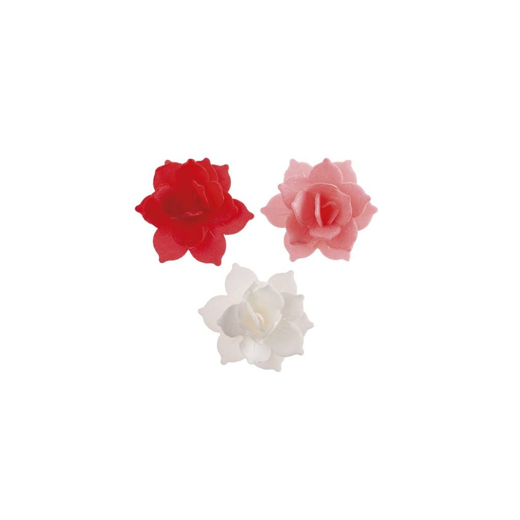 Dekorace z jedlého papíru Květiny bílé, růžové a červené (8 ks) ▹