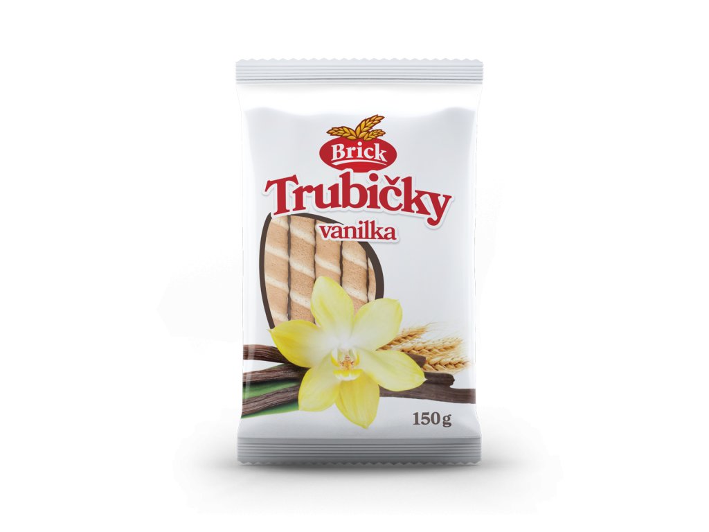 - Oplatkové trubičky s vanilkovou náplní 60 %. Trvanlivé pečivo.