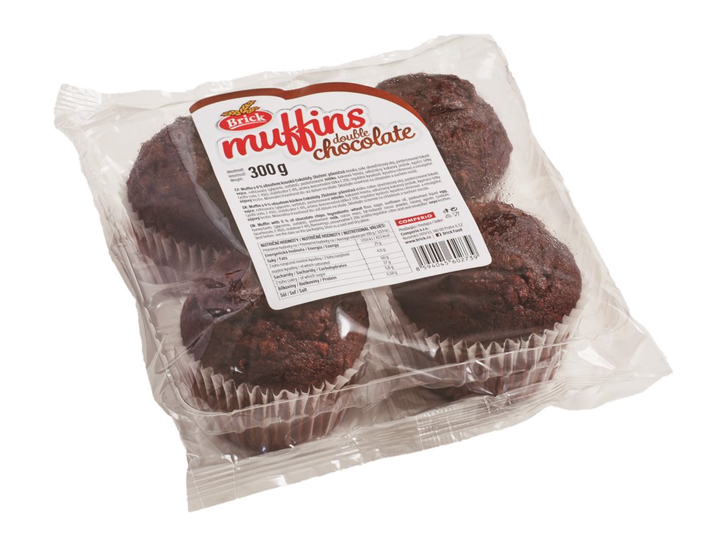 - Muffiny s 9% obsahem kousků čokolády, jemné pečivo.