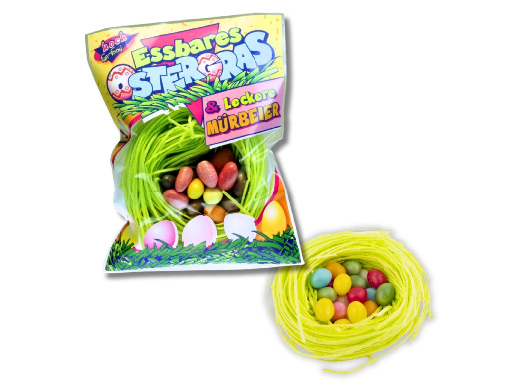 Jedlá tráva z oplatkového papíru je ideální pro zdobení velikonočních košíčků, jarní dekorace, hnízda a mnoho dalšího. Tráva se skládá z dlouhých nití, které jsou dodávány svinuté. Rozložené množství tvoří velký objem na zdobení asi 20 cm velkých košíčků.