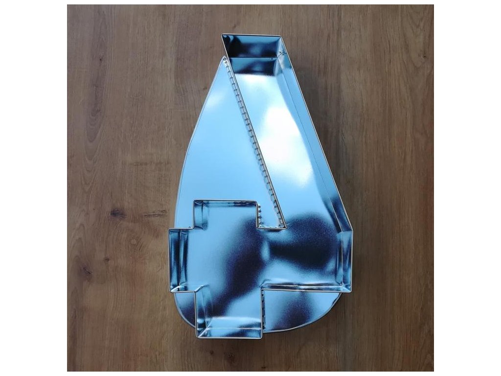 Forma se dnem. Dortová forma z pocínovaného plechu ve tvaru číslice. Výška cca 34 cm. Cena za 1 ks.