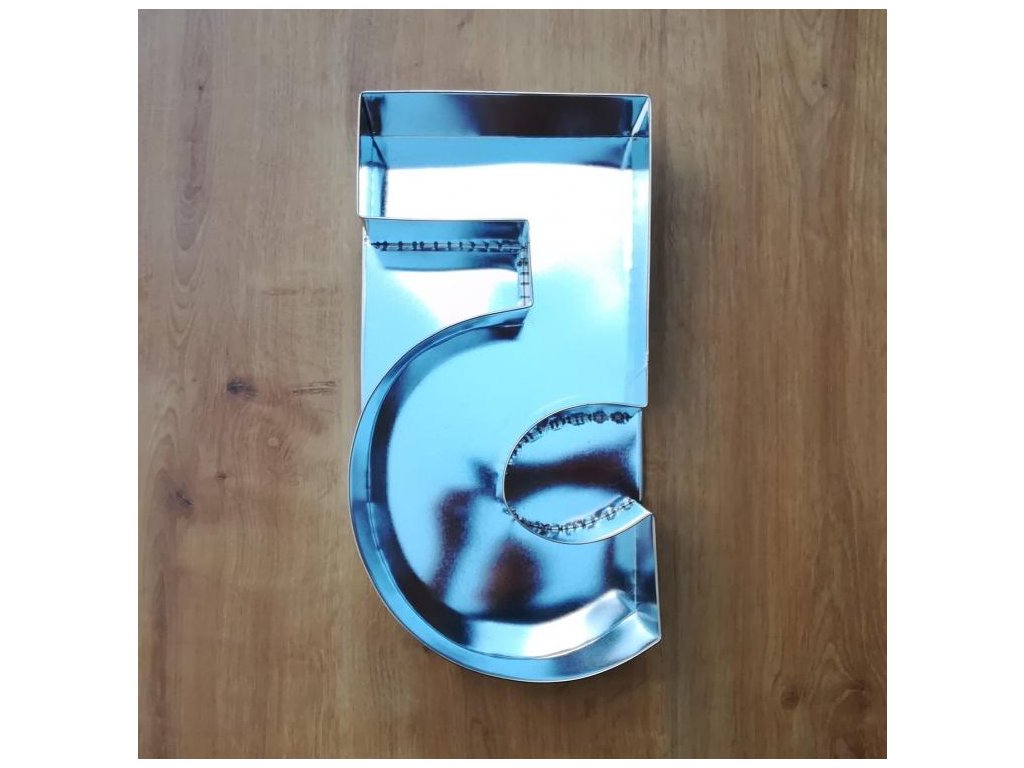 Forma se dnem. Dortová forma z pocínovaného plechu ve tvaru číslice. Výška cca 34 cm. Cena za 1 ks.