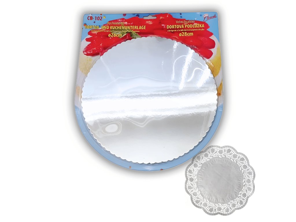 Tato dortová podložka je vhodná nejen pro efektní prezentaci dortů, ale i pro lehčí manipulaci s nimi a ocení ji nejen milovníci pečení, ale i profi cukráři. Podložka je vyrobená z kvalitního papíru a nepropouští mastnotu. Podložka je navíc snadno omyvatelná a může se použít opakovaně