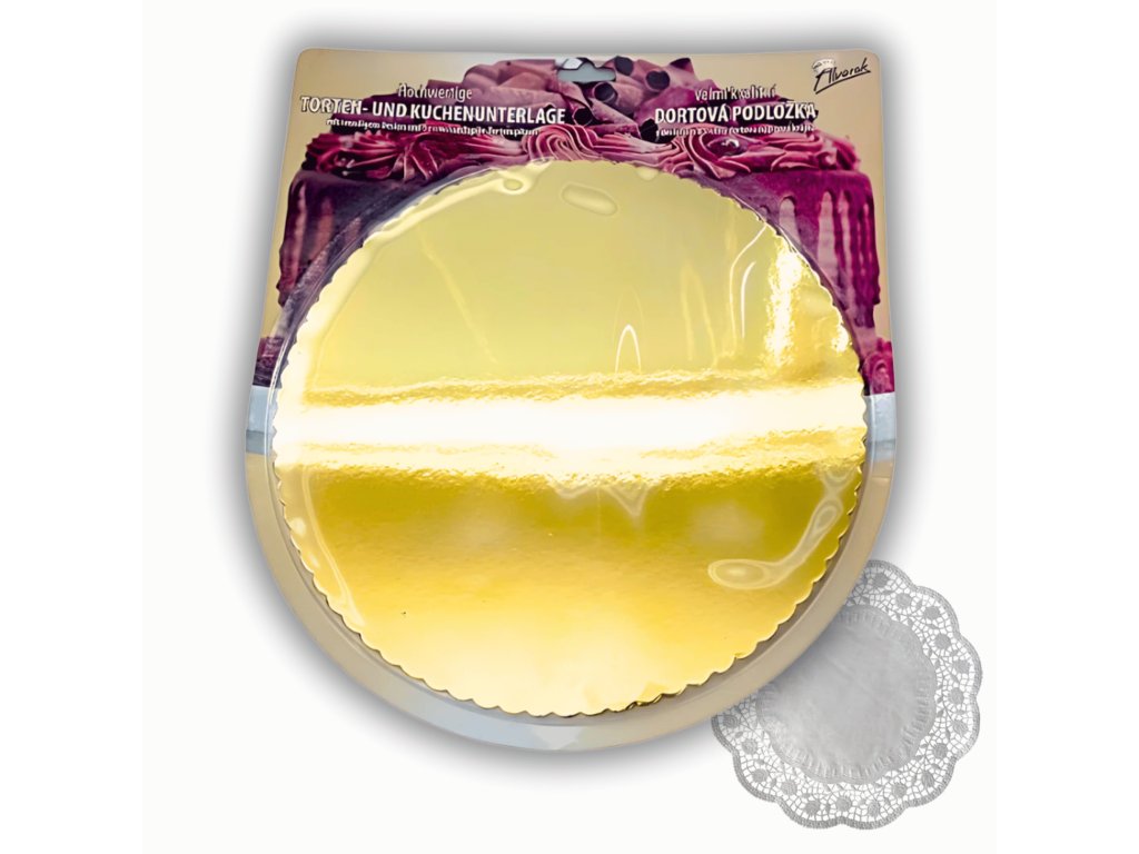 Tato dortová podložka je vhodná nejen pro efektní prezentaci dortů, ale i pro lehčí manipulaci s nimi a ocení ji nejen milovníci pečení, ale i profi cukráři. Podložka je vyrobená z kvalitního papíru a nepropouští mastnotu. Podložka je navíc snadno omyvatelná a může se použít opakovaně