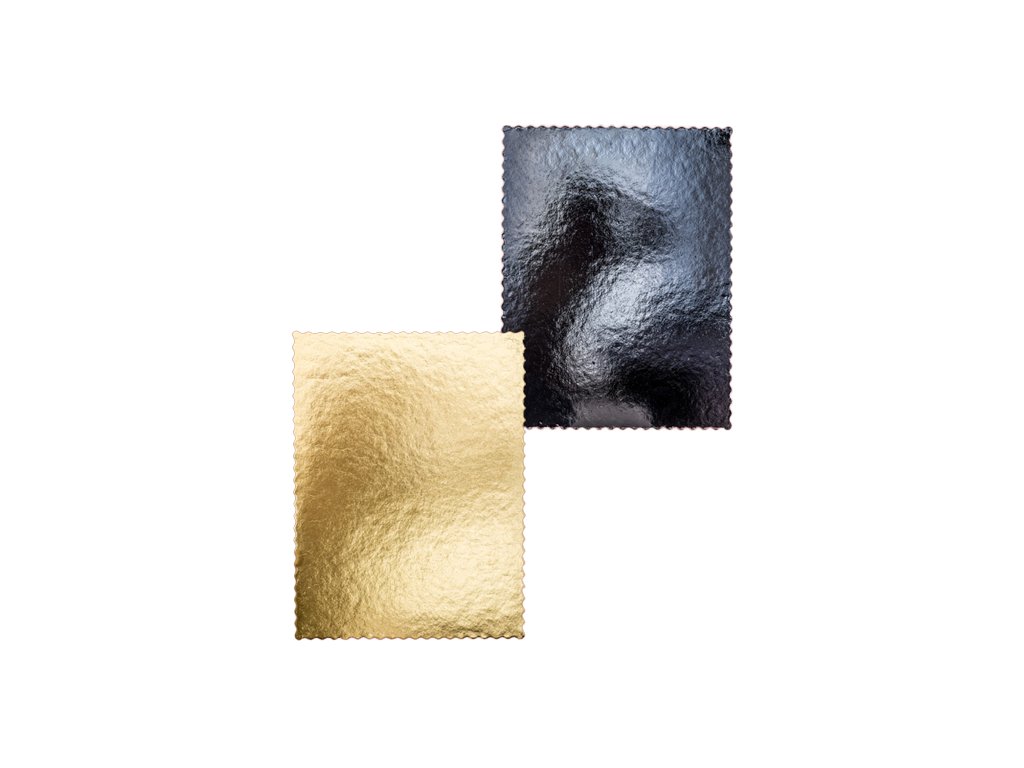 Základní 3,5 mm dortová podložka, výběr dle zvolené velikosti. Barva: jedna strana zlatá, druhá strana černá. Hladký okraj bez dekoru.