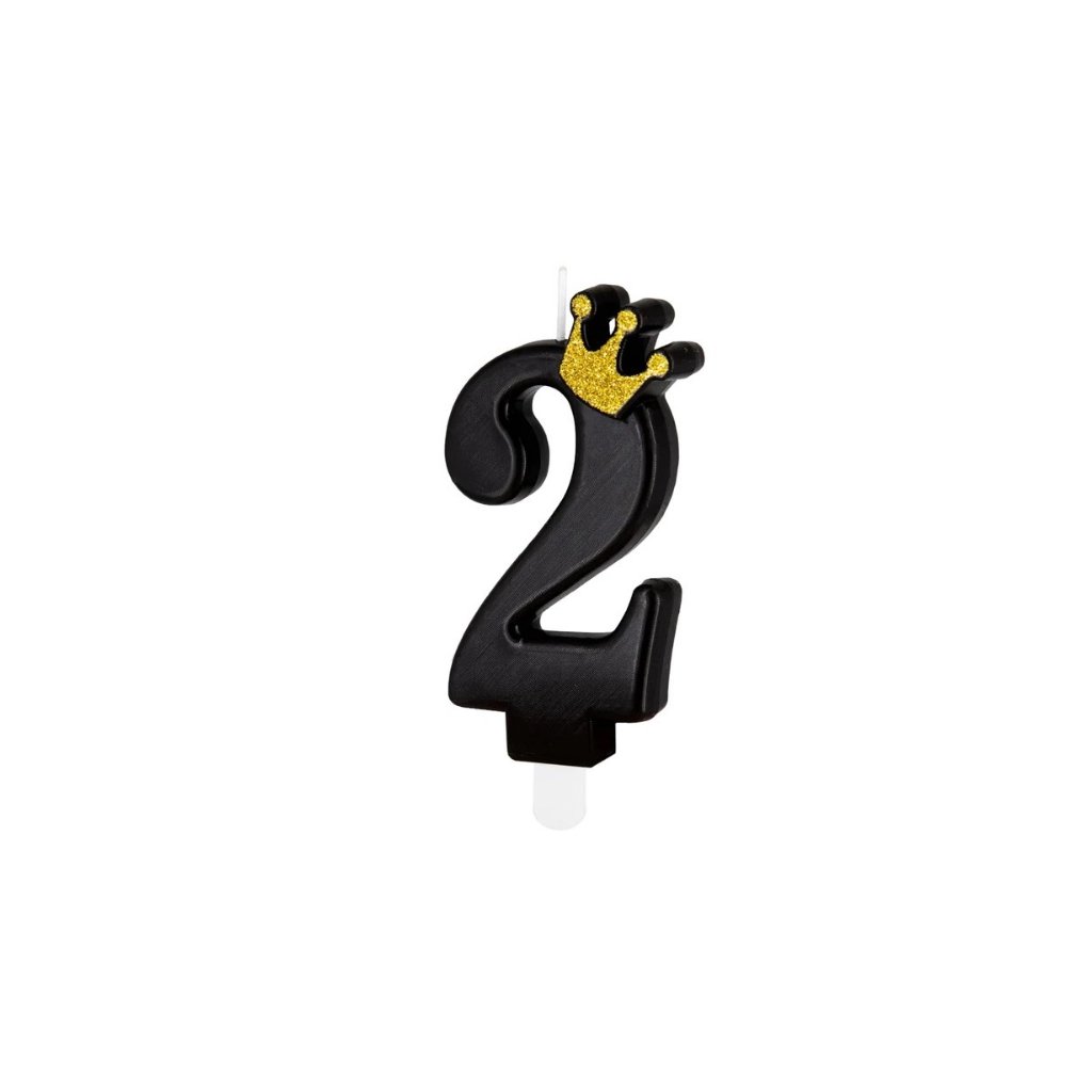 Dortová svíčka číslo 2 - černá s korunkou 8,8 cm /BP