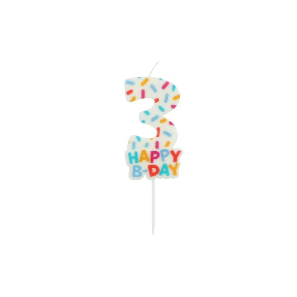 Dortová svíčka číslo 3 - Happy B-day 7 cm /BP