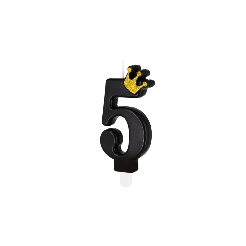Dortová svíčka číslo 5 - černá s korunkou 8,8 cm /BP