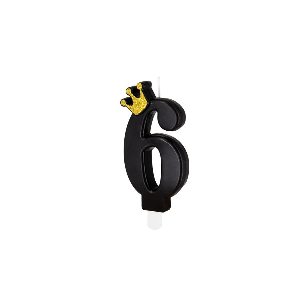 Dortová svíčka číslo 6 - černá s korunkou 8,8 cm /BP