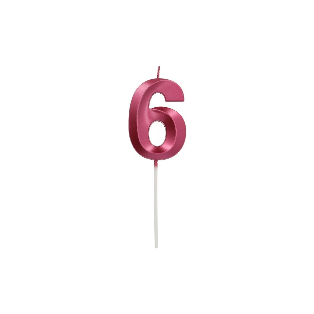 Dortová svíčka číslo 6 - Glamour Red 7 cm /BP
