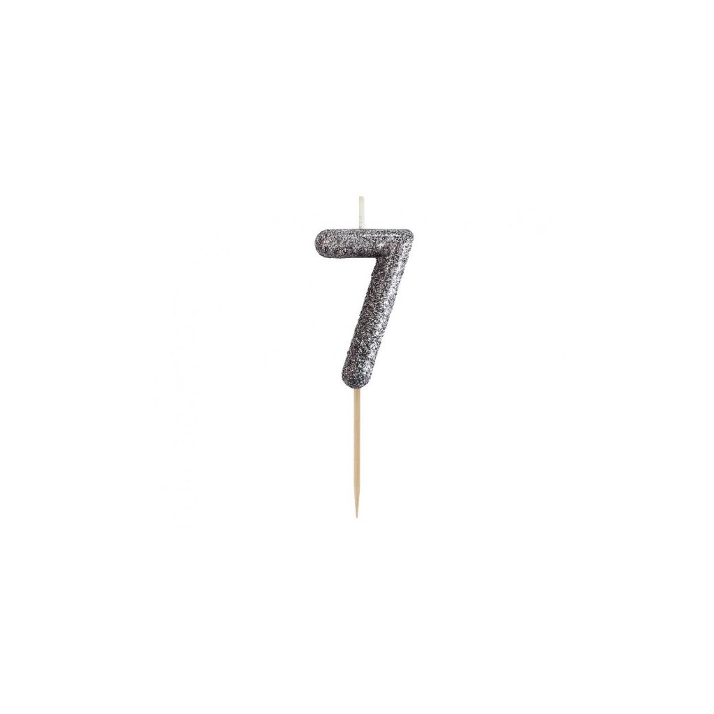 Dortová svíčka číslo 7 - třpytivá černo stříbrná, 11 x 3,5 cm /BP