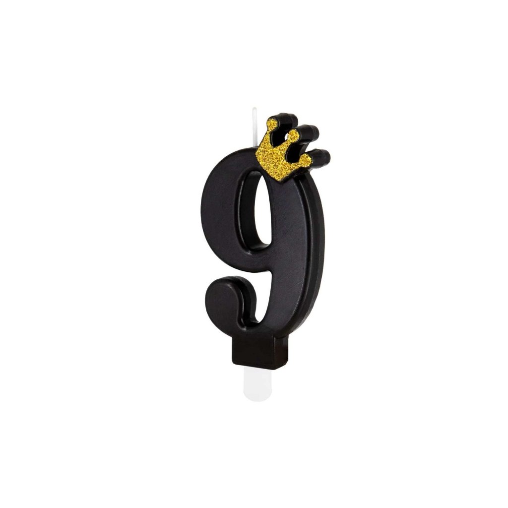 Dortová svíčka číslo 9 - černá s korunkou 8,8 cm /BP
