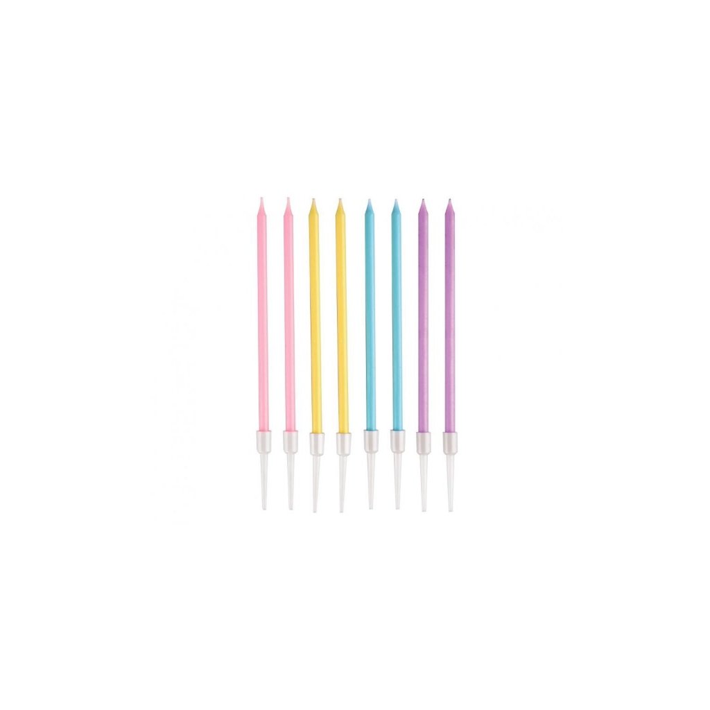 Dortové svíčky s držátky - Macaron mix 14 cm - 8 ks /BP