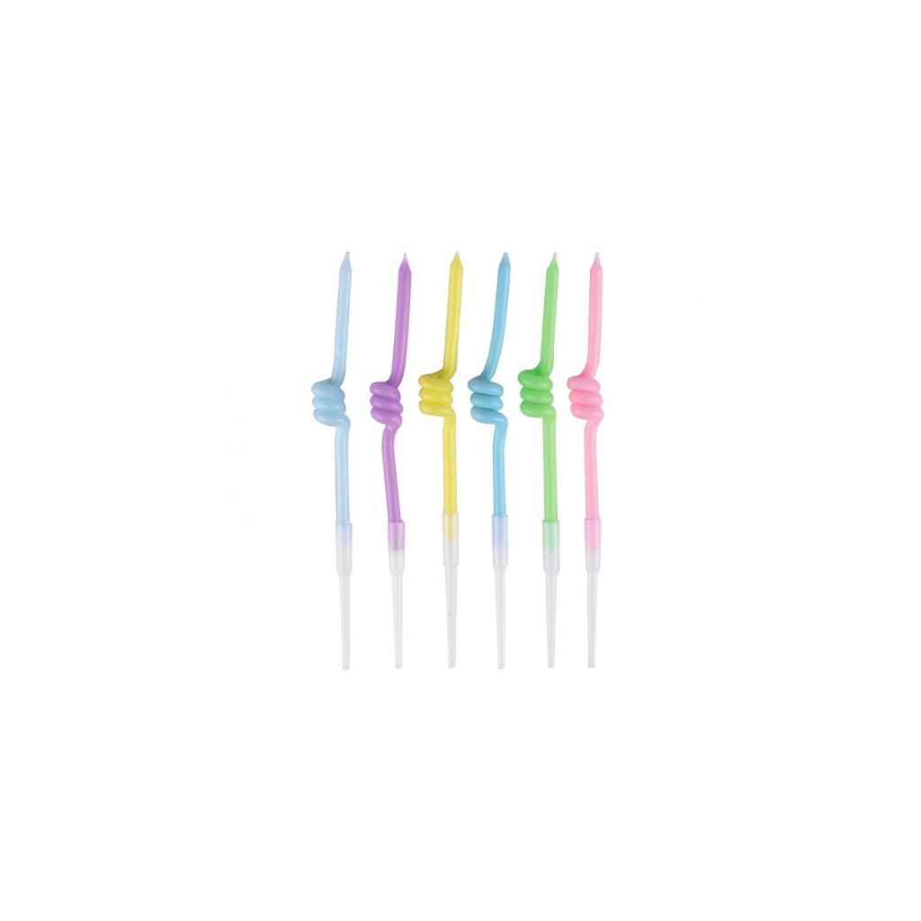 Dortové svíčky s držátky - Macaron spirála 12 cm - 6 ks /BP