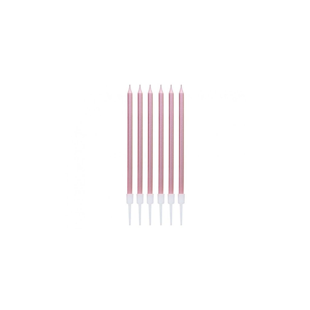Dortové svíčky s držátky - rosegold metalické 13,5 cm - 6 ks /BP