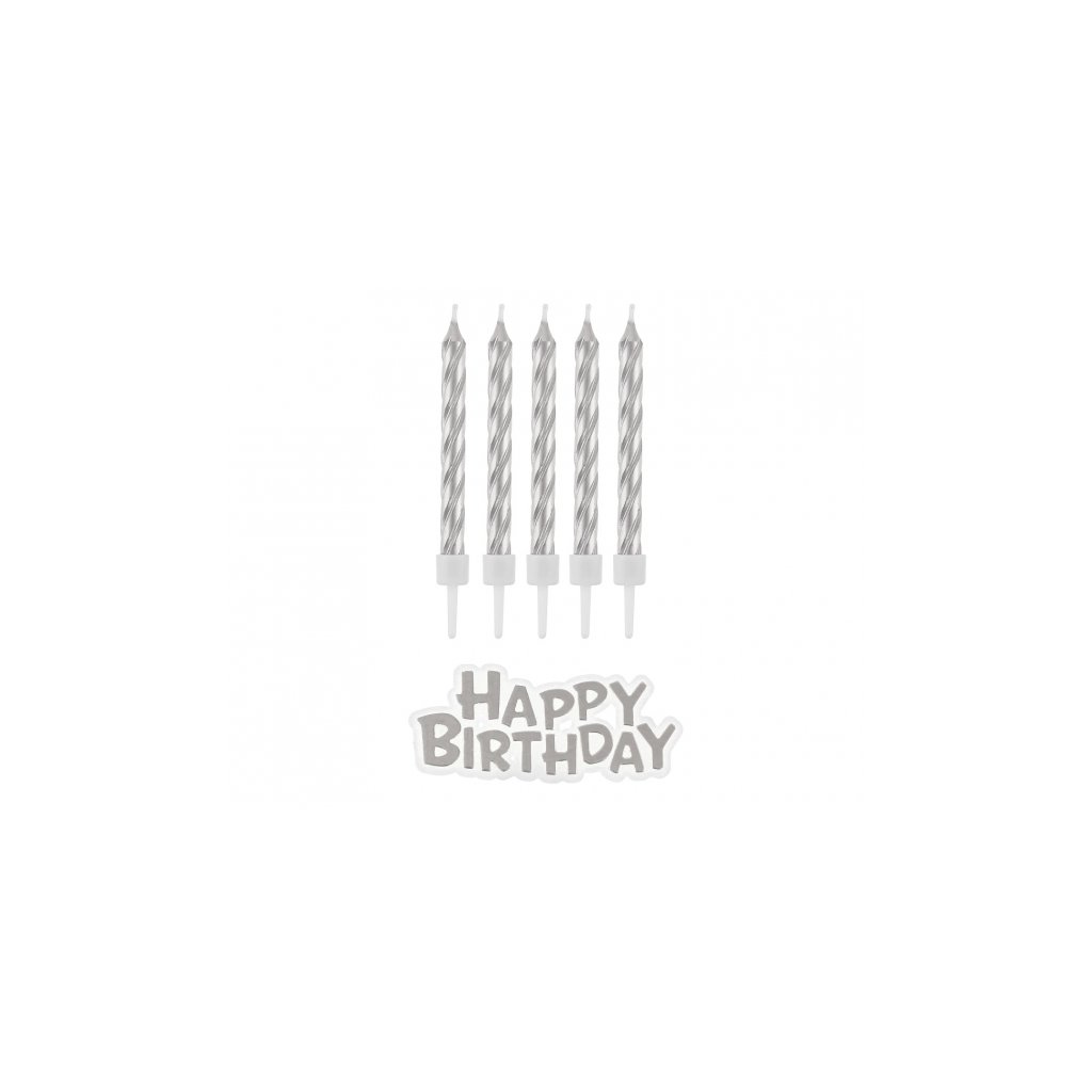 Godan svíčky stříbrné s nápisem Happy Birthday (16 ks) ▹ /BP