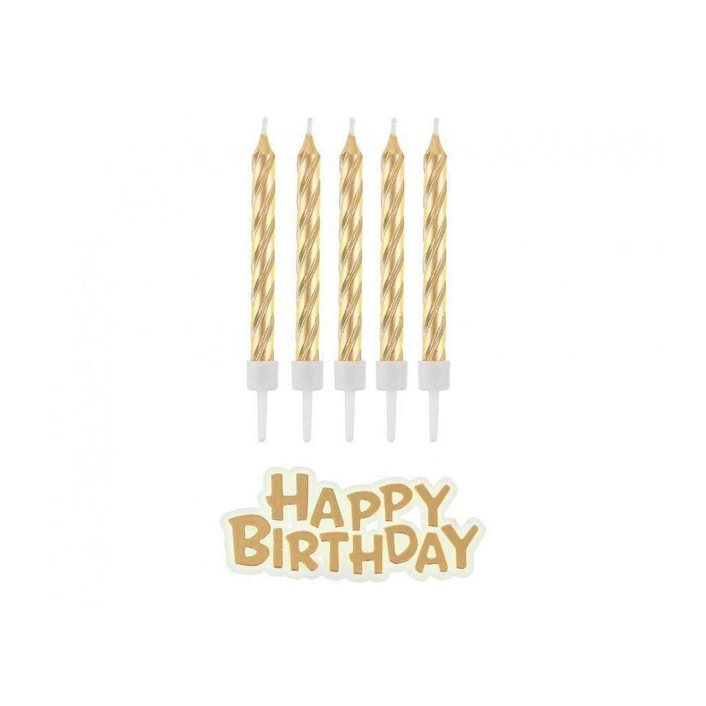 Godan svíčky zlaté s nápisem Happy Birthday (16 ks) ▹ /BP