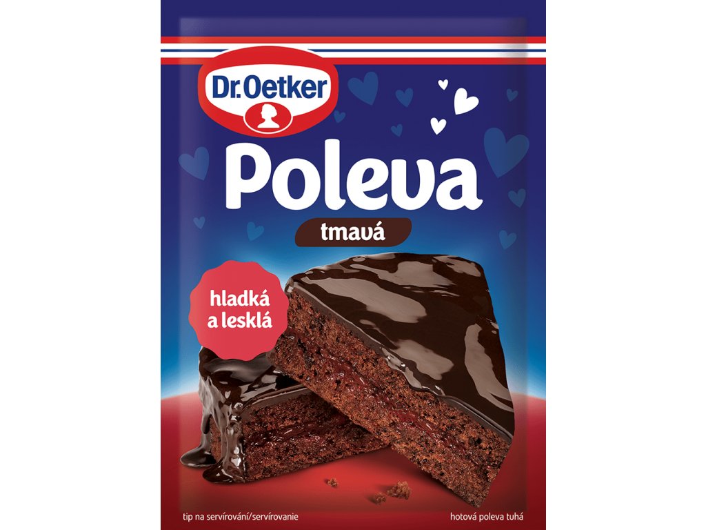 - Poleva tmavá. Hotová cukrářská poleva tuhá na zdobení dortů, zákusků a jiných moučníků.