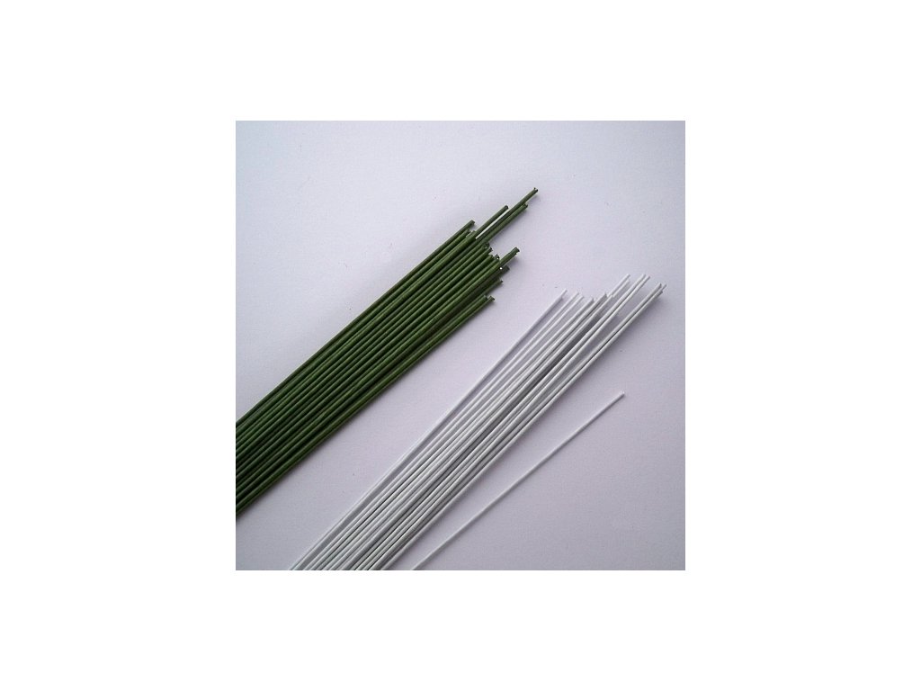 50 ks tenkých drátků v balení. Aranžovací drátky opředené floristickou páskou, síla drátu 0,32 mm, délka 36 cm, povrch opředený floristickou páskou zelené barvy. Balení obsahuje 50 ks.