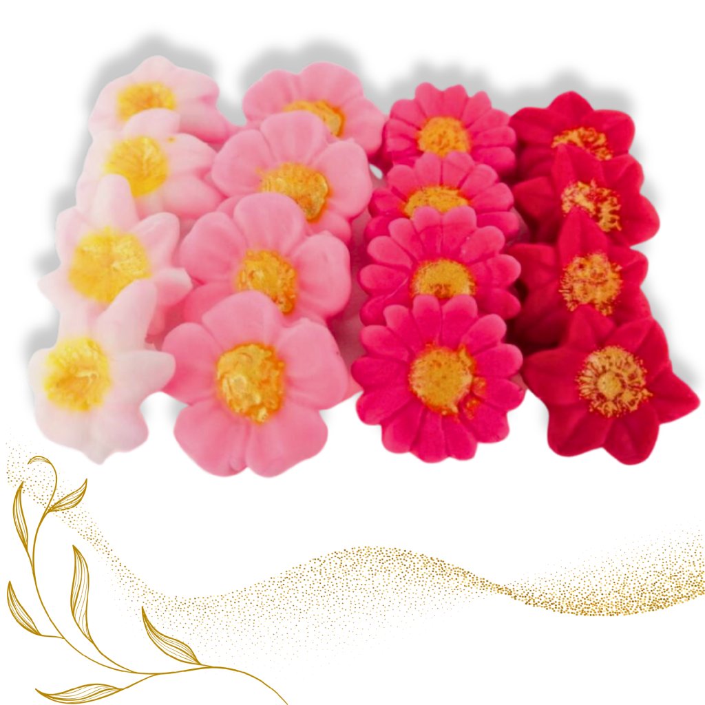 Drobné květy z kokosového marcipánu 20g (cca 40ks) - Červeno-růžový mix