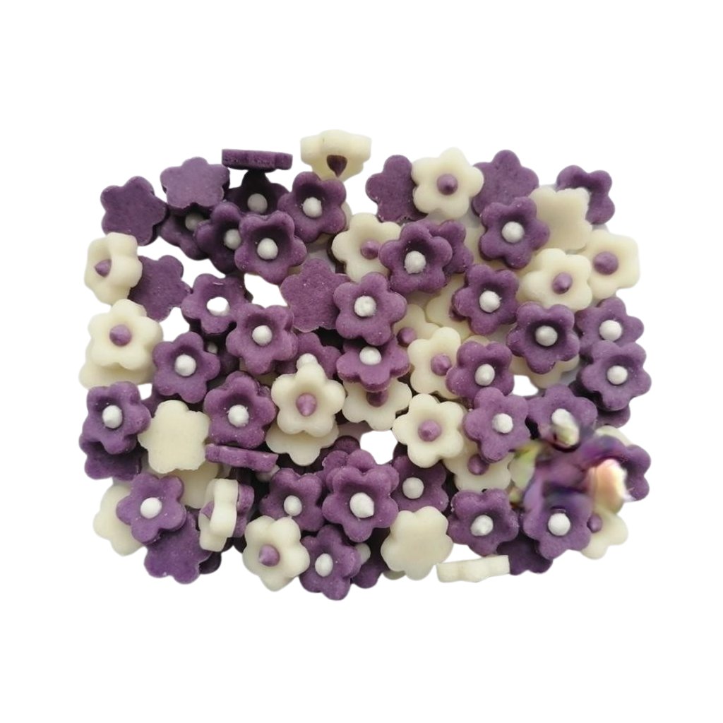 Drobné květy z kokosového marcipánu 20g (cca 60ks) - FIALOVÉ