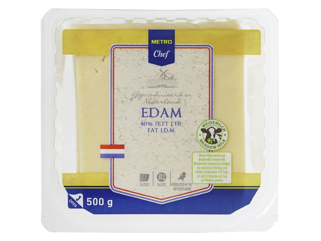 Nakupovat potraviny, drogerii a další potřeby pro domácnost online se vyplatí. Náš online supermarket Terunka.cz, toho má v kategorii: mnohem více. Prohlédněte si celou naší nabídku a ušetřete svůj čas i peníze.METRO Chef Edam 40% sýr plátky chlaz. 500 g za skvělou cenu, máme skladem.