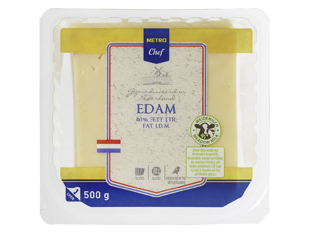 Složení produktu METRO Chef Edam 40% sýr plátky chlaz. 500 g: