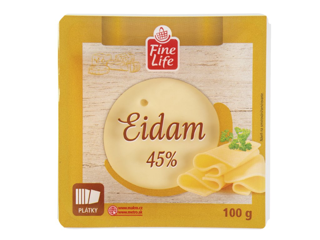 SLOŽENÍ produktu Fine Life Eidam 45 % plátky chlaz. 100 g:
