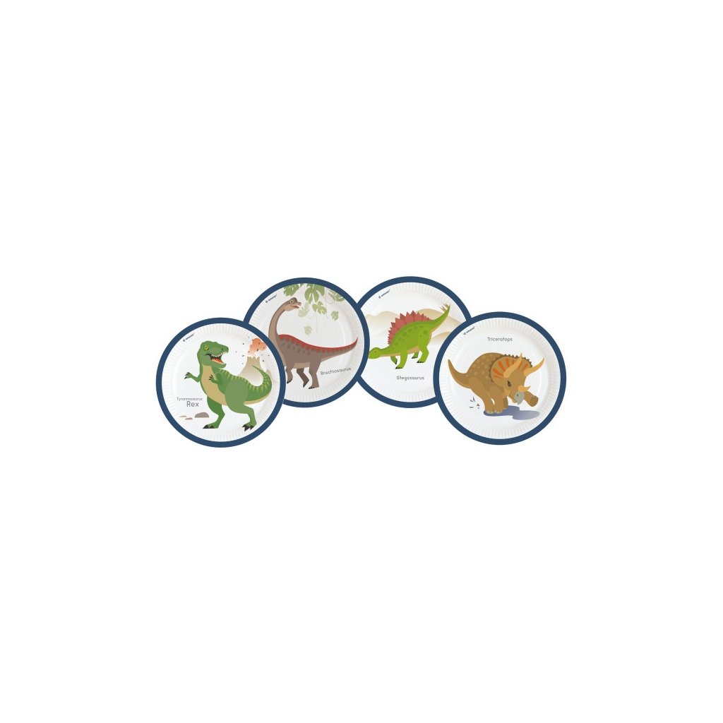 Papírové talíře v motivu dinosaurů. Skvělá a praktická dekorace narozeninové party nebo dinosauří party. Společně s dalšími dino produkty vytvoří parádní atmosféru. Rozměr: 23 cm. Balení: 8 ks.Doplňkové parametry