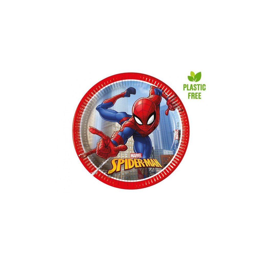 Papírové talíře s oblíbeným hrdinou Spidermanem. Papírové talíře s potiskem, budou nepostradatelným doplňkem každé oslavy narozenin, tématické party nebo zahradní oslavy s grilováním. Jsou také velmi praktické, talíře po použití jednoduše ekologicky zlikvidujete, bez nutnosti mytí. 100% papír bez plastu. Velikost: 20 cm. Balení: 8 ks.Doplňkové parametry