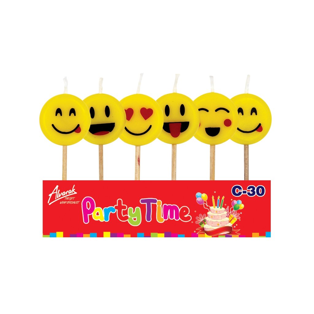 Šest kusů narozeninové svíčky se smajlíky, tzv. emoji.