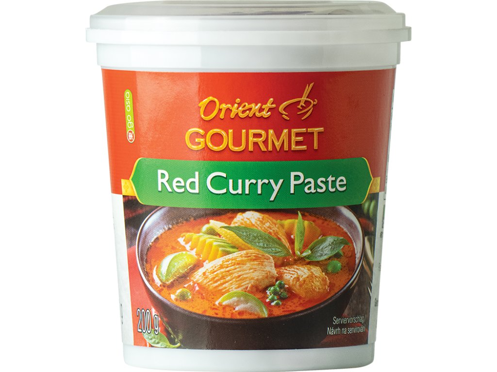 - Červená kari pasta, kořenící přípravek k dochucení pokrmů na thajský způsob