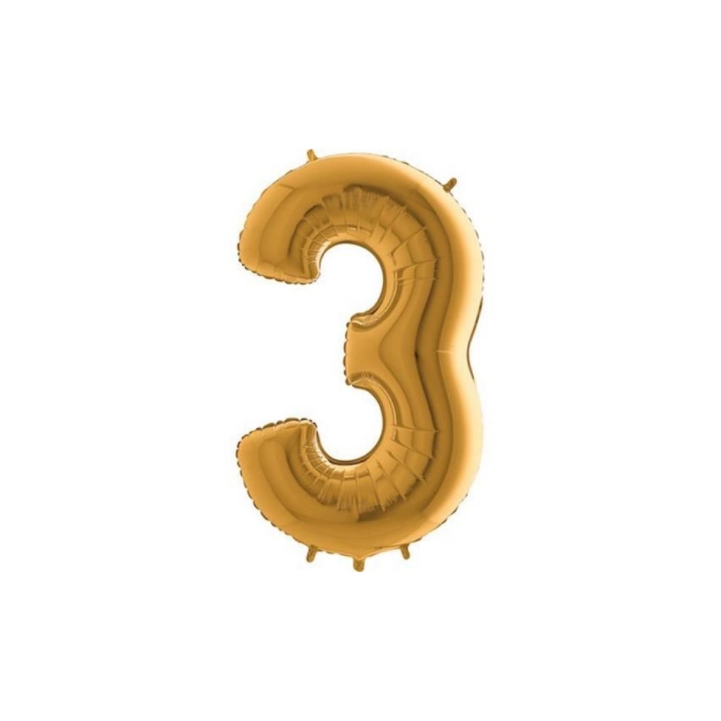 Nafukovací balónek číslo 3 zlatý 102cm extra velký - Grabo | Cukrářské potřeby