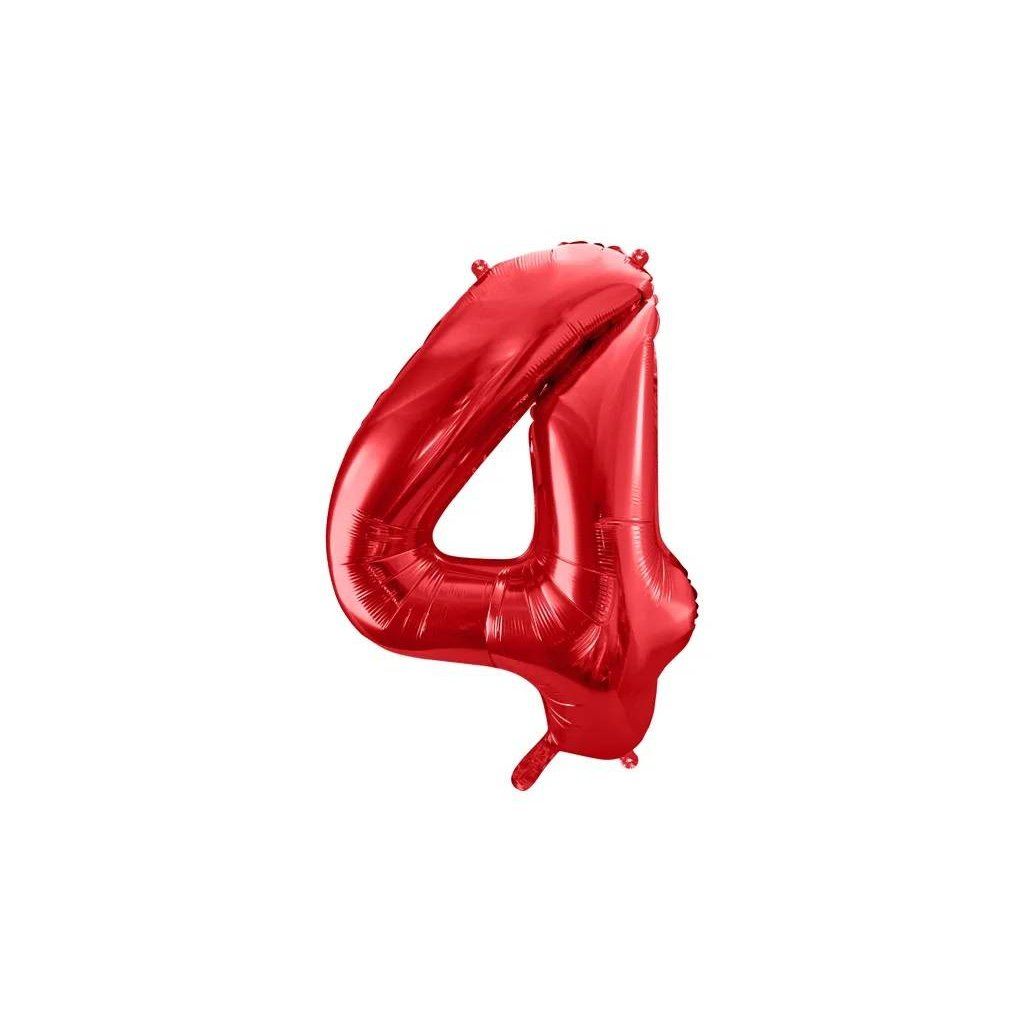 PartyDeco foliový balónek červený číslo 4 (86 cm) ▹ /BP