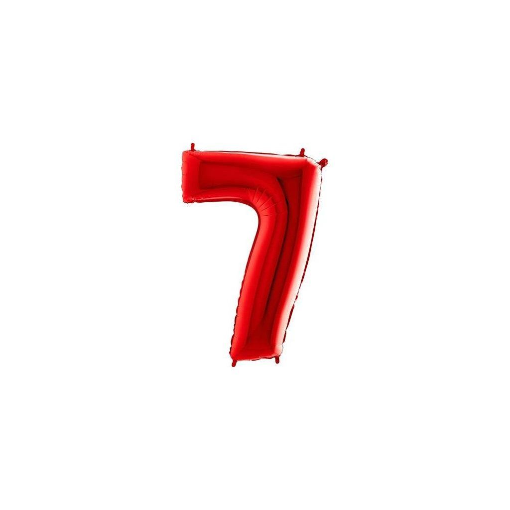 Červený balónek číslo 7. Balónek je vyrobený z pevné fólie.Doplňkové parametry