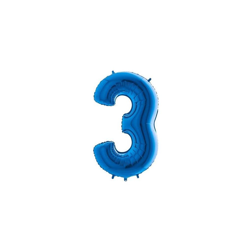 Nafukovací balónek číslo 3 modrý 102cm extra velký - Grabo | Cukrářské potřeby